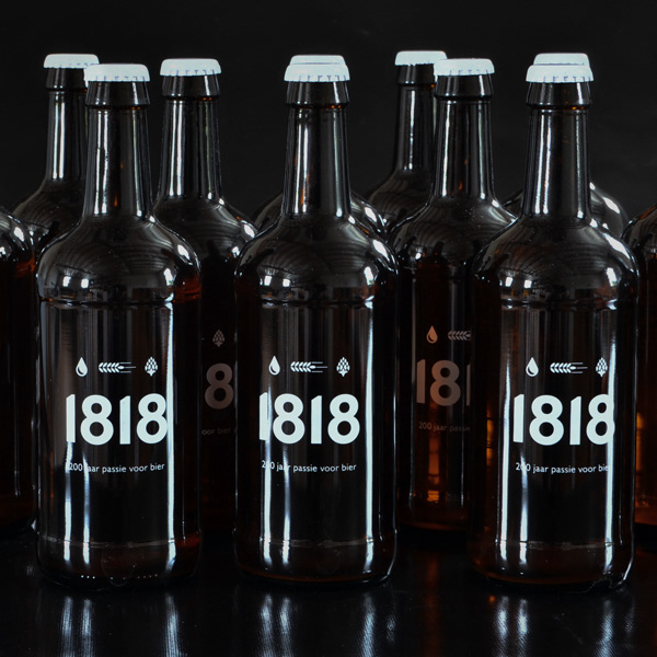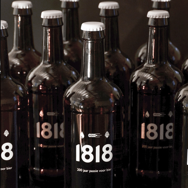 Vormgeving en opmaak communicatie 200 jarig bestaan brouwerij Contreras. Logo bieretiket 1818, verpakkingen ...